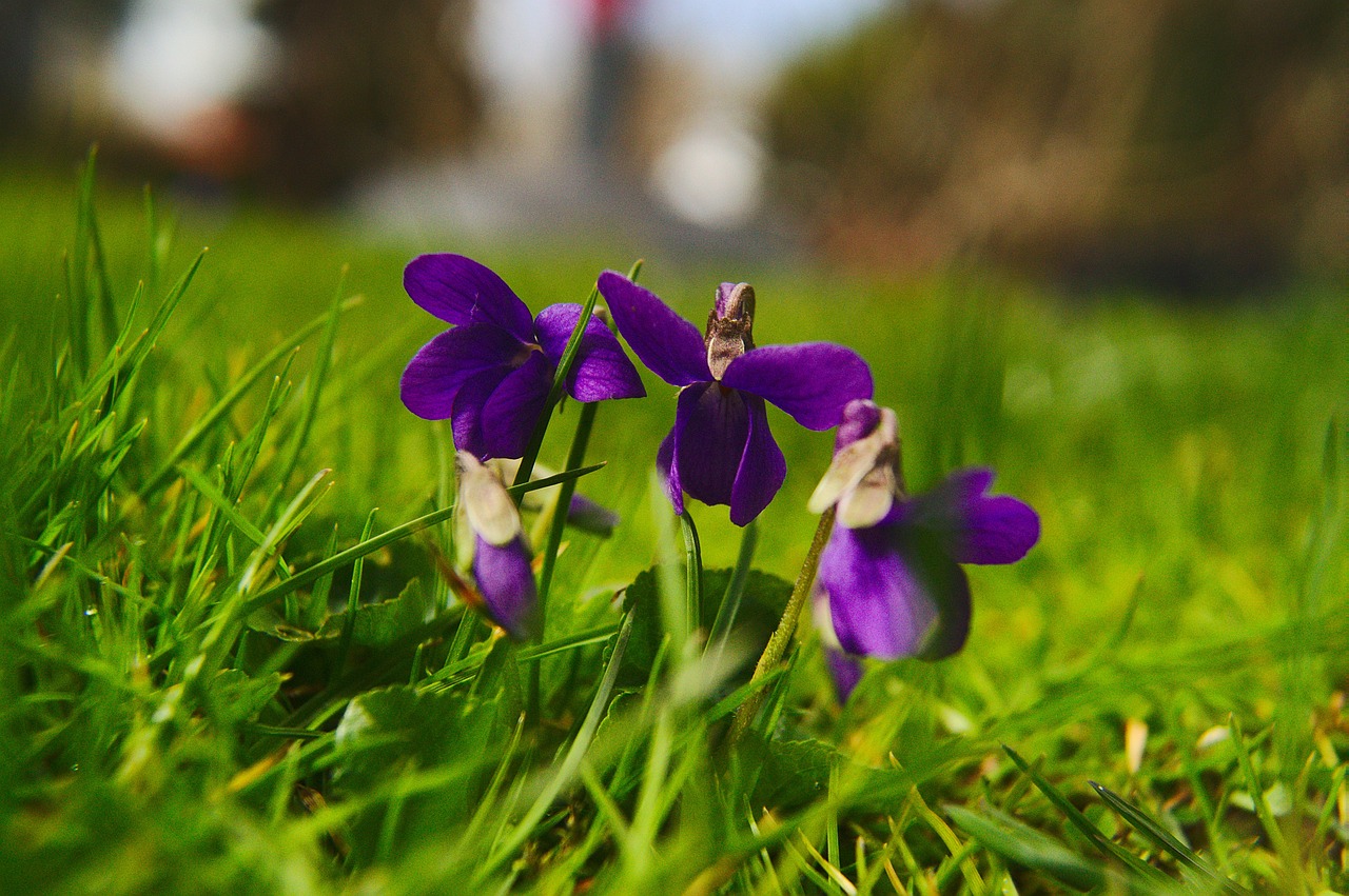 blaue veilchen auf einer grünen wiese